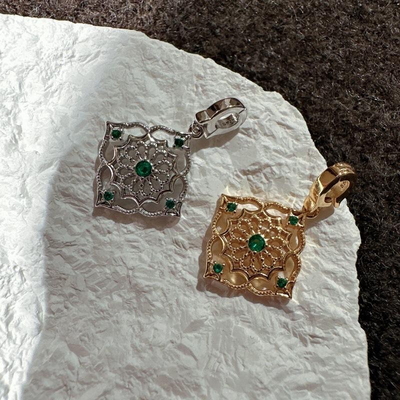 เครื่องประดับเงินแท้ S925 สไตล์พระราชวัง สีเขียว แกะสลักลายยุคกลางแบบฝรั่งเศส เรียบง่าย น่ารัก น้ำหนักเบา พร้อมจี้และชาร์มลายฉลุ