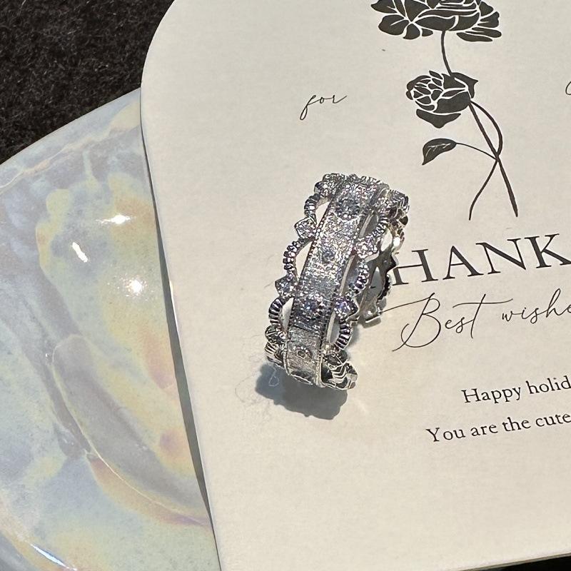 แหวนเงินแท้ S925 ดีไซน์ลายลูกไม้สไตล์วัง แหวนเปิดแบบเรียบง่าย วินเทจ แหวนดีไซน์เฉพาะ ลายเรขาคณิต โดดเด่นด้วยความเป็นธรรมชาติ