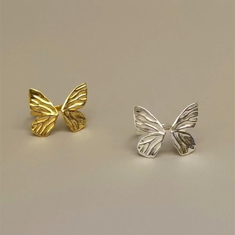 แหวนเงินแท้ S925 ดีไซน์ผีเสื้อสไตล์เรโทร สดใส ธรรมชาติ ดุจน้ำไหล ดีไซน์เปิด ปรับขนาดได้ อเนกประสงค์ เรียบง่าย ทันสมัย