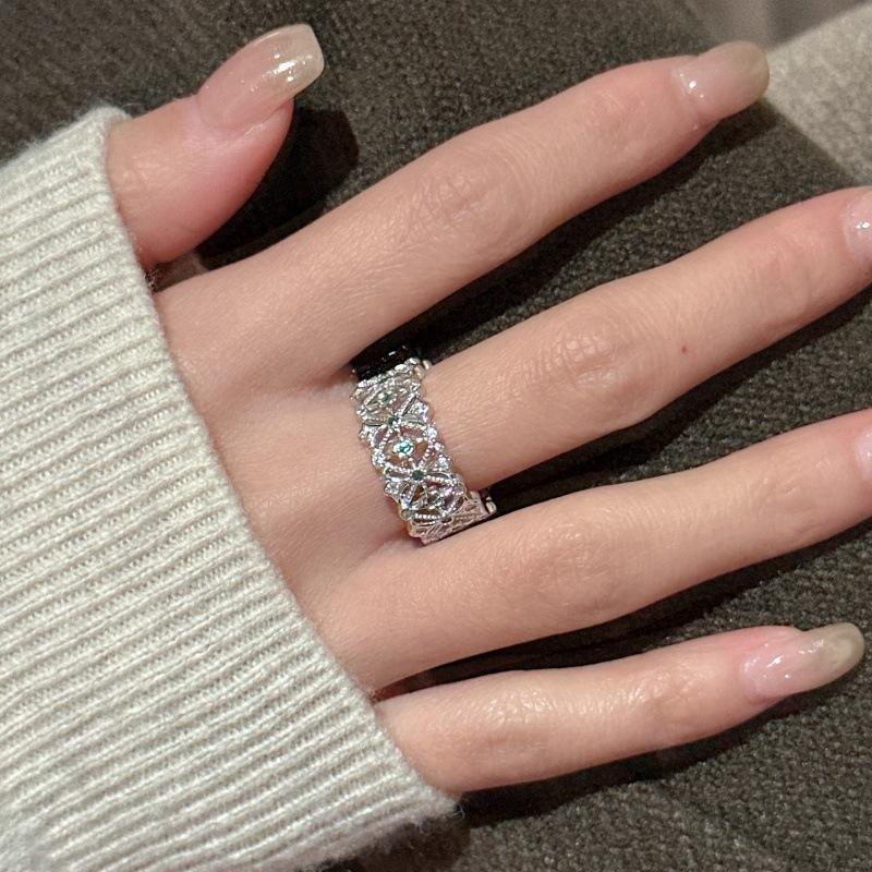 แหวนเงินแท้ S925 ดีไซน์ดอกไม้เล็กแบบโปร่ง ประดับด้วยลวดลายทันสมัย แหวนแฟชั่นหรูหราเบาๆ สำหรับขายส่ง