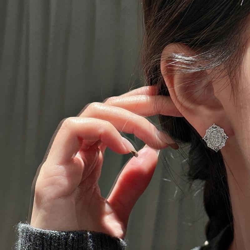 ต่างหูเงินแท้ S925 ดีไซน์ย้อนยุค ประดับเพชรซิร์โคเนียมเต็มเม็ด ดีไซน์เรียบหรู ทันสมัย สินค้าดีไซน์เฉพาะกลุ่ม