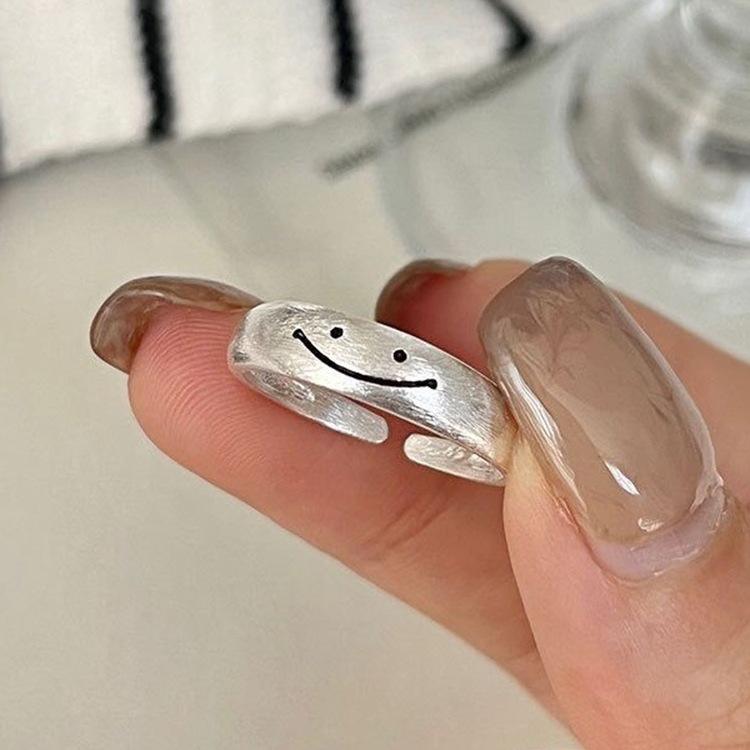 แหวนเงินแท้ S925 ดีไซน์เกาหลี สไตล์อินเทรนด์ เรียบหรู ดูดี มีเอกลักษณ์ ลายหน้ายิ้ม ดีไซน์เรียบง่าย ทันสมัย ใช้งานได้หลากหลาย
