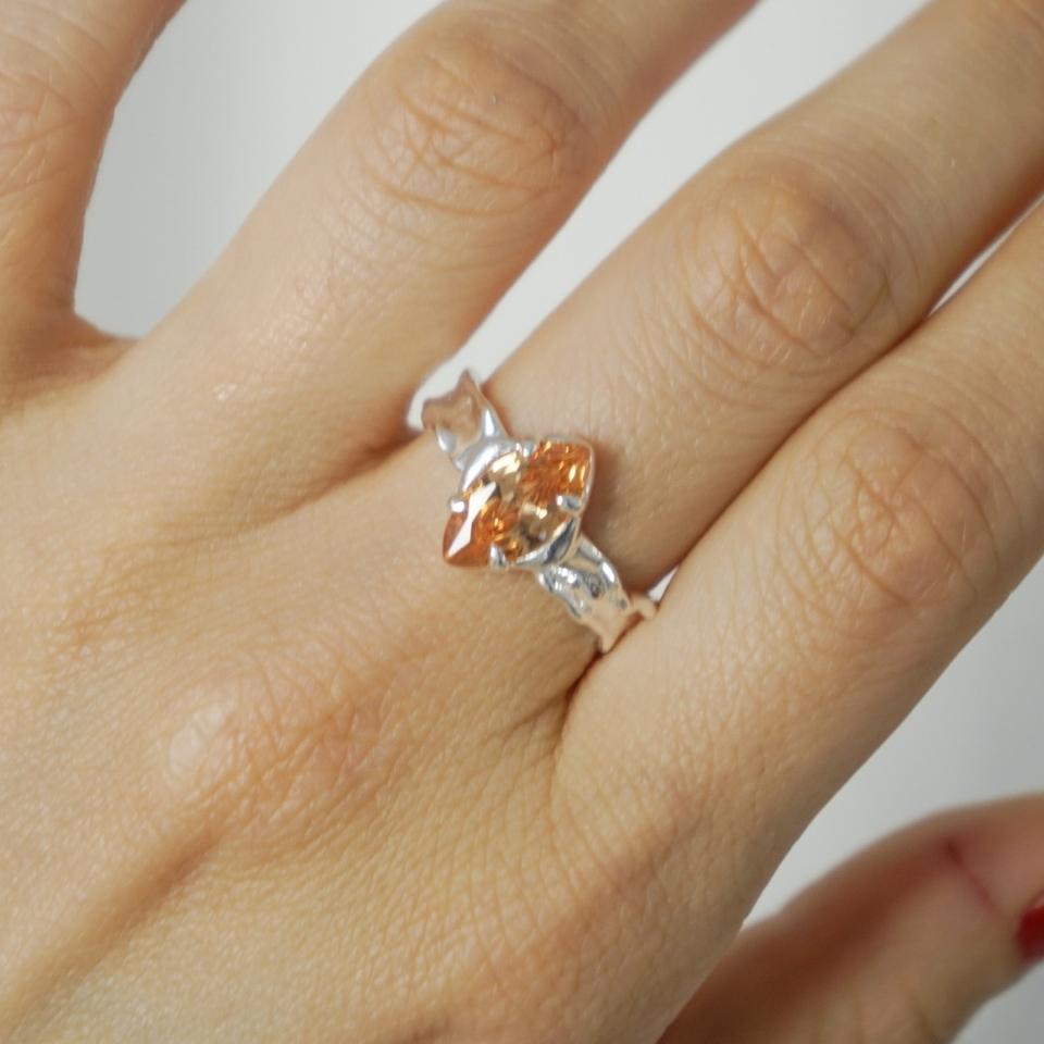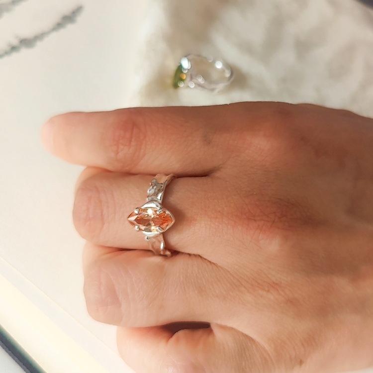 แหวนเงินแท้ S925 ประดับมรกตและเพทาย ดีไซน์เฉพาะสำหรับผู้หญิง รูปทรงไม่สมมาตร ผิวสัมผัสแบบไม่เรียบ ฝังบนแหวนสแตนเลส