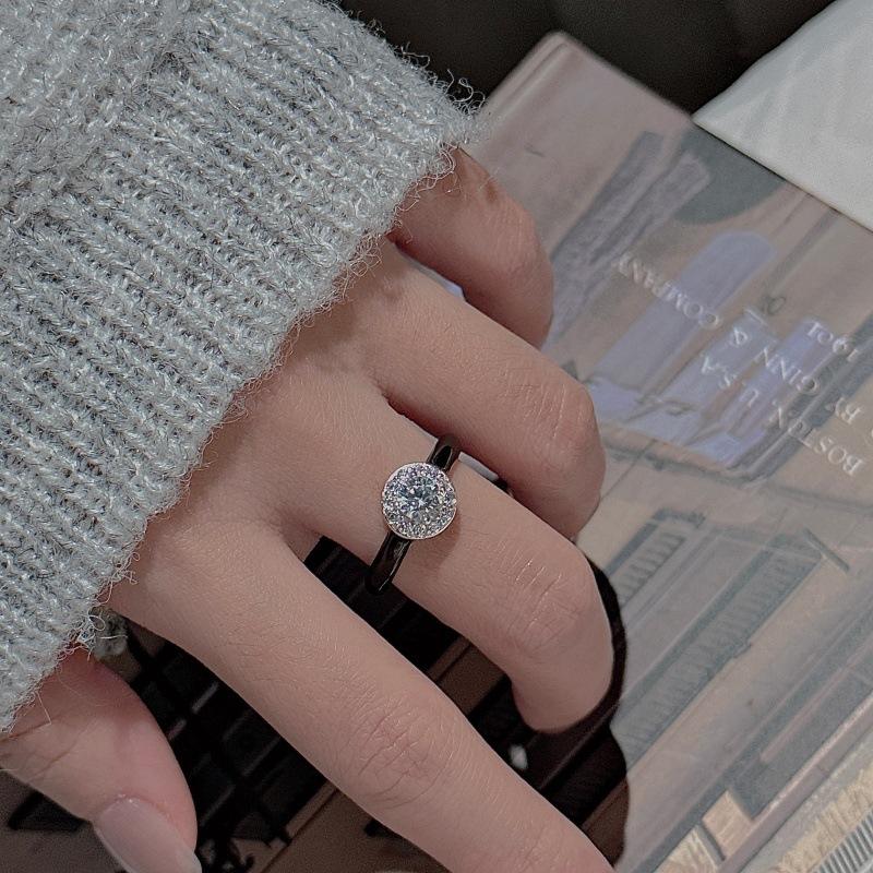 แหวนเงินแท้ S925 ประดับเพชรซิคอนเดี่ยว ดีไซน์เฉพาะตัว เรียบง่าย ทันสมัย น่ารัก สไตล์วินเทจยุคกลาง ประดับเพชรซิคอนทรงกลมเคลือบเงา