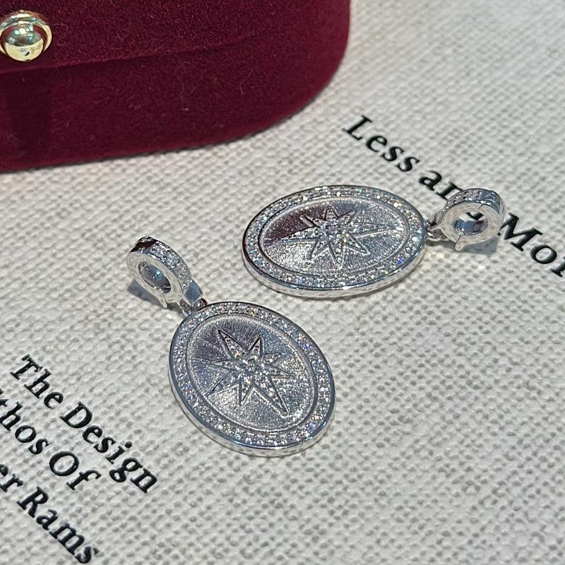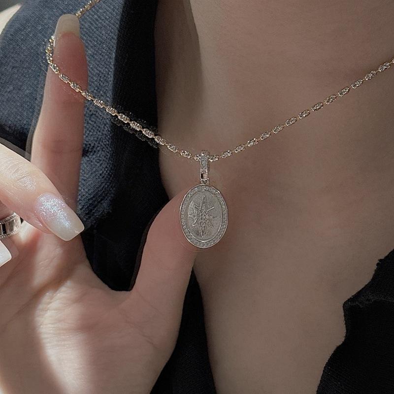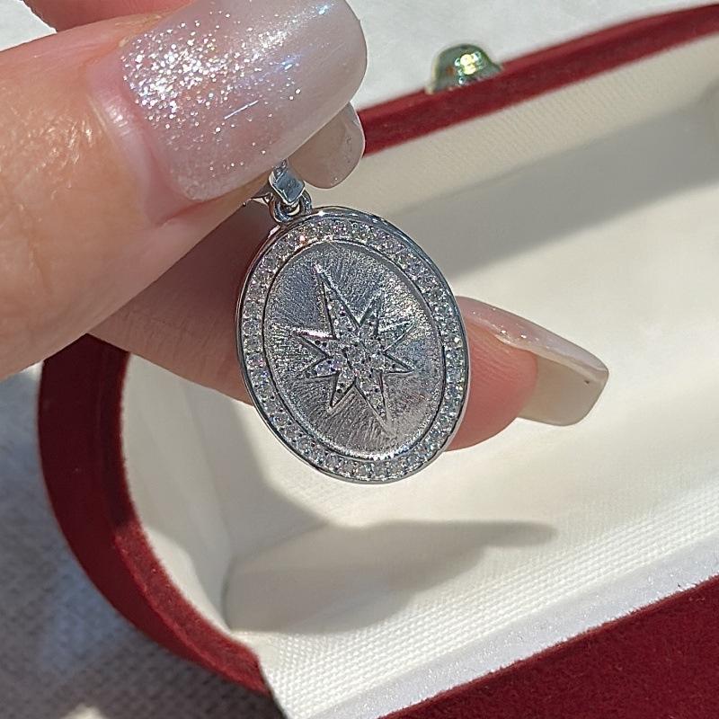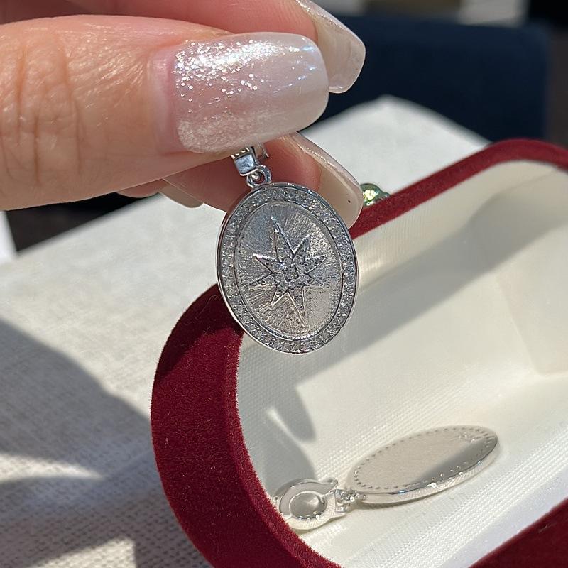 จี้รูปดาวหกแฉกเงินแท้ S925 ดีไซน์เฉพาะตัว สไตล์วินเทจฝรั่งเศสเรียบง่าย ขัดเงา รูปทรงวงรี เครื่องรางทางศาสนา