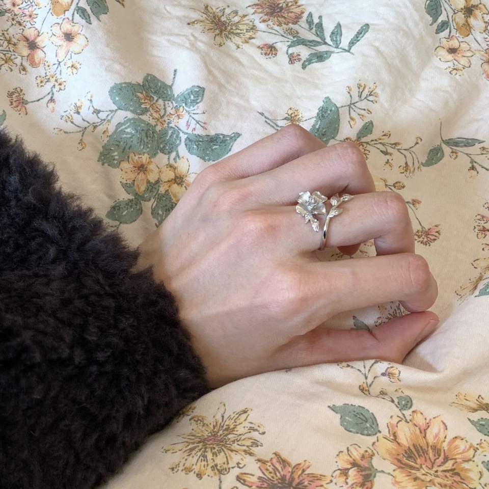 แหวนเงินแท้ S925 ลายดอกไม้สปริง สไตล์ป่าญี่ปุ่น ดีไซน์เฉพาะกลุ่ม หรูหราเบาๆ ระดับไฮเอนด์ ประดับเพชรแบบฝัง แหวนเปิดปรับขนาดได้