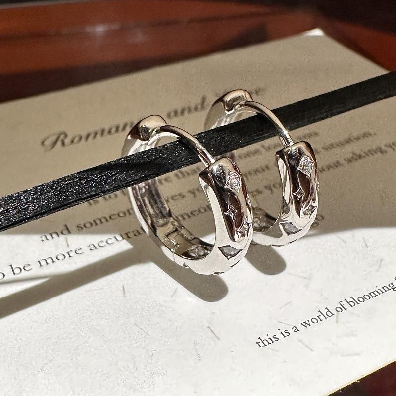 ต่างหูเงินแท้ S925 ดีไซน์รูปดาว เรียบง่าย ทันสมัย สไตล์อเมริกันวินเทจ ดีไซน์แหวน หวาน เท่ มีสไตล์