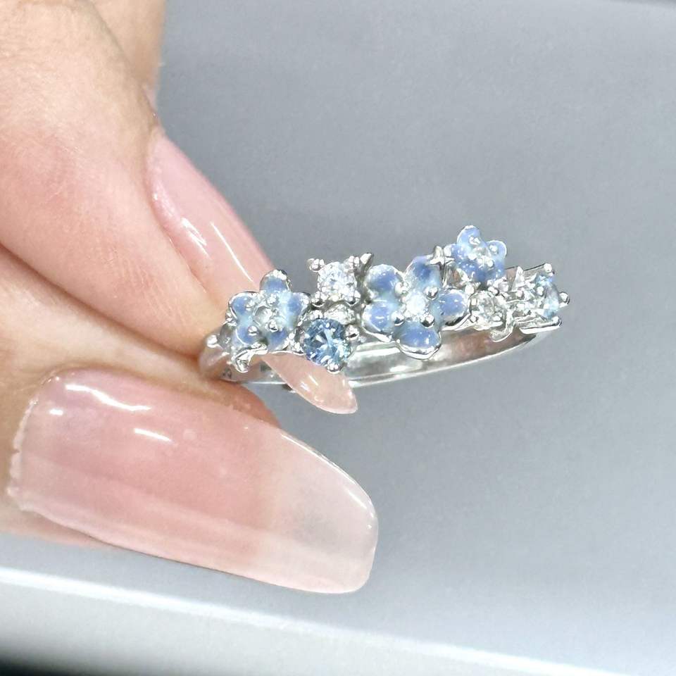แหวนเงินแท้ S925 ลายดอกไม้รูปดาว สีฟ้าทะเล โรแมนติก ดีไซน์เฉพาะสำหรับนิ้วชี้ แหวนผู้หญิง