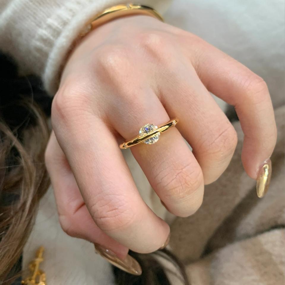 แหวนเงินแท้ S925 รูปดาวยูเอฟโอ ประดับเพชร ดีไซน์หรูหรา ดาวเคราะห์หมุนได้บนวงแหวนหมุน รูปทรงปี่เซียะ พร้อมเอฟเฟกต์ประกายระยิบระยับ