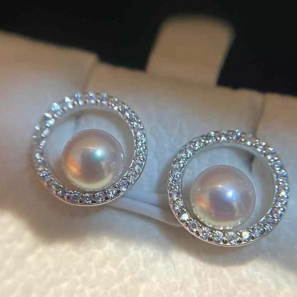 ต่างหูเงินแท้ S925 ประดับมุกน้ำจืดธรรมชาติ ขนาด 7-8 มม. ใกล้เคียงกับน้ำจืด