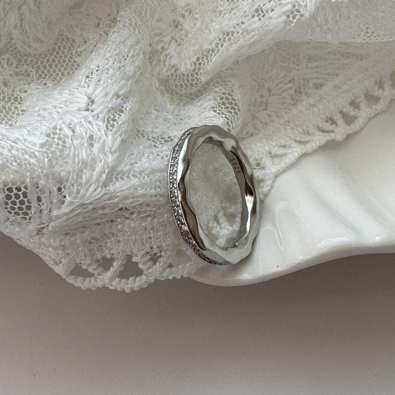 แหวนเงินแท้ S925 ดีไซน์เรโทรสไตล์ยุโรป-อเมริกา ลายพื้นผิว ดีไซน์เฉพาะตัว ประดับเพชรซิคอนทรงกลมเรียบ สามารถสวมซ้อนกันได้