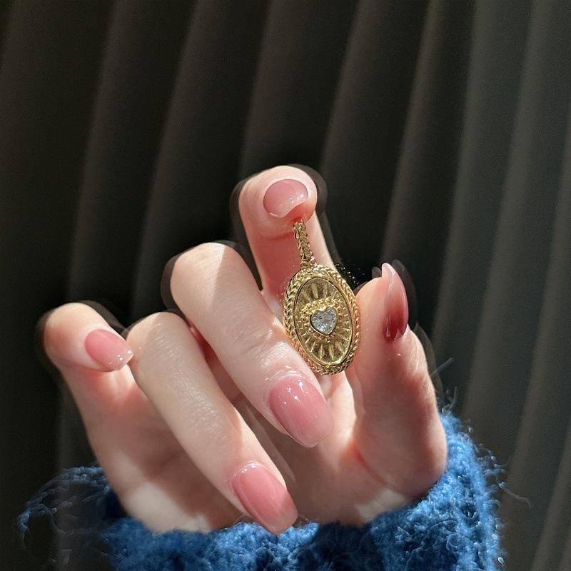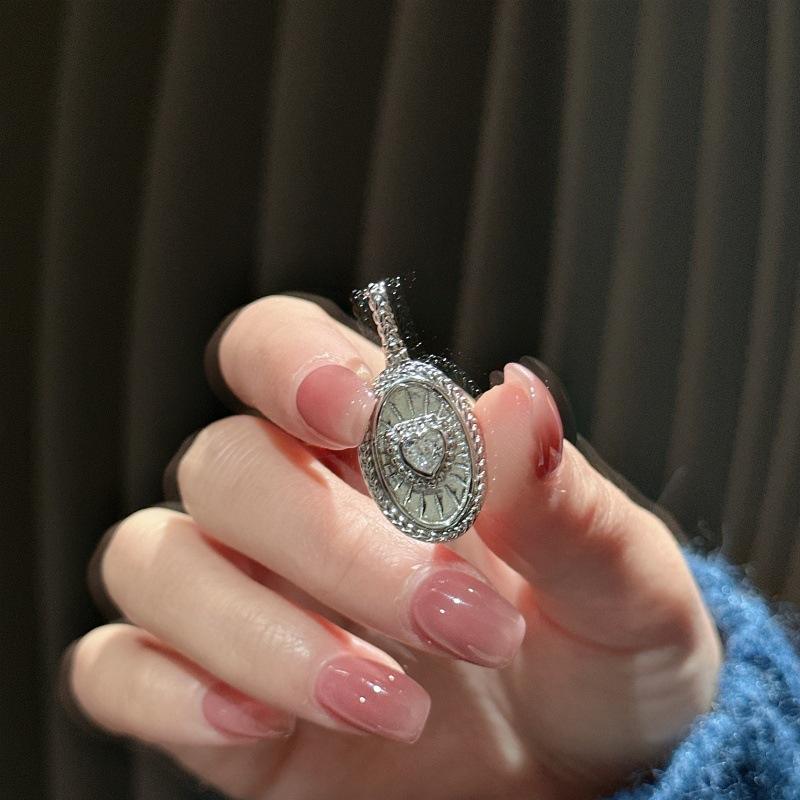 จี้เงินแท้ S925 รูปหัวใจสไตล์วินเทจ ดีไซน์เรียบง่าย หวาน เท่ รูปทรงวงรี ลายเรขาคณิต หรูหรา ดีไซน์เฉพาะ วัสดุหลักทอง