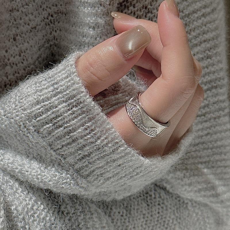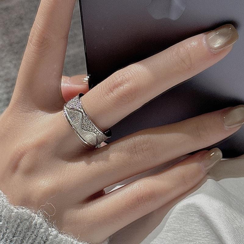 แหวนเงินแท้ S925 ประดับเพชรซิคอนแบบวินเทจ ดีไซน์ลายคลื่นเรียบง่ายและทันสมัย พร้อมแหวนมอยส์ซาไนต์เฉพาะกลุ่ม