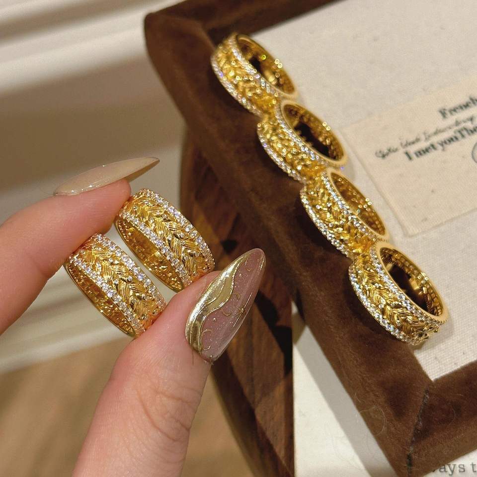 ต่างหูเงินแท้ S925 รูปรวงข้าว ดีไซน์หรูหรา ประดับกิ่งทอง ใบหยก สไตล์จีนใหม่ พร้อมกำไลข้อมือเพชร