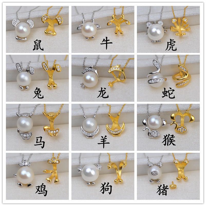 ชุดสร้อยคอเงินแท้ S925 12 ราศี พร้อมจี้เปล่ารูปไข่มุก ลายหนู วัว เสือ กระต่าย มังกร ม้า แกะ ลิง หมู