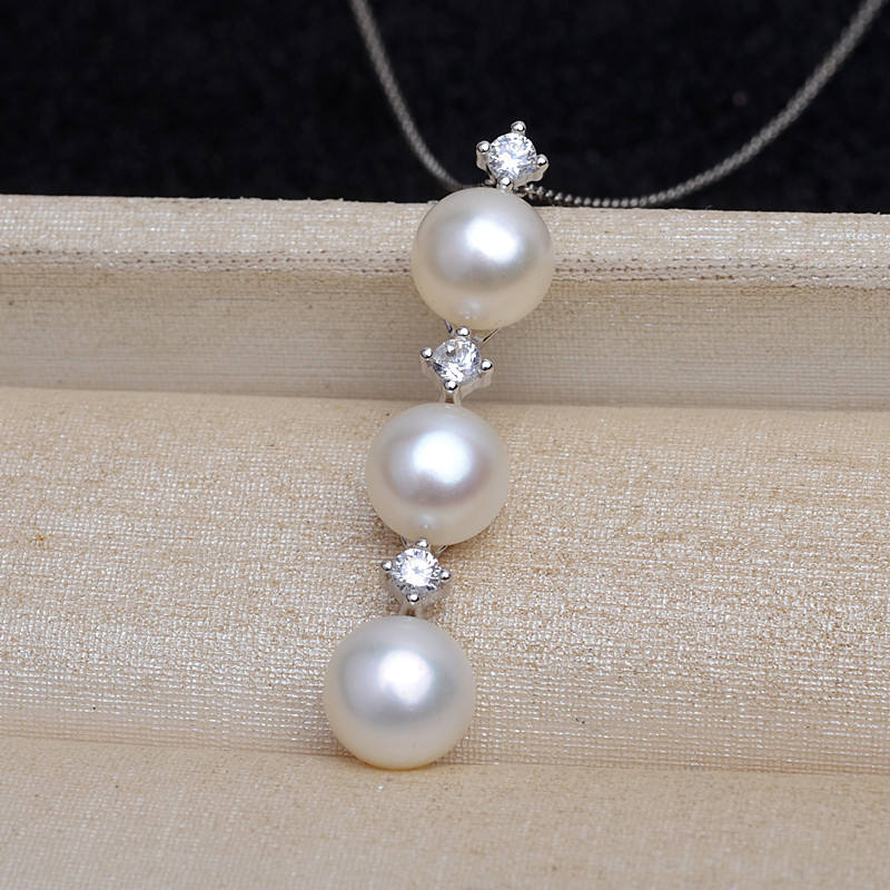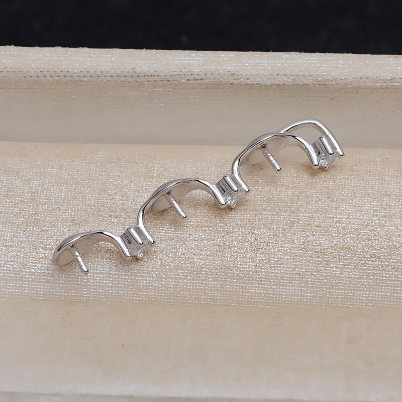 อุปกรณ์เงินแท้ S925 สำหรับทำจี้ 3 เม็ด ขนาด 7.5-8 มม. พร้อมฐานไม้สำหรับแขวน DIY เครื่องประดับ 4377 ฐานเปล่าสำหรับจี้มุกและชาร์ม