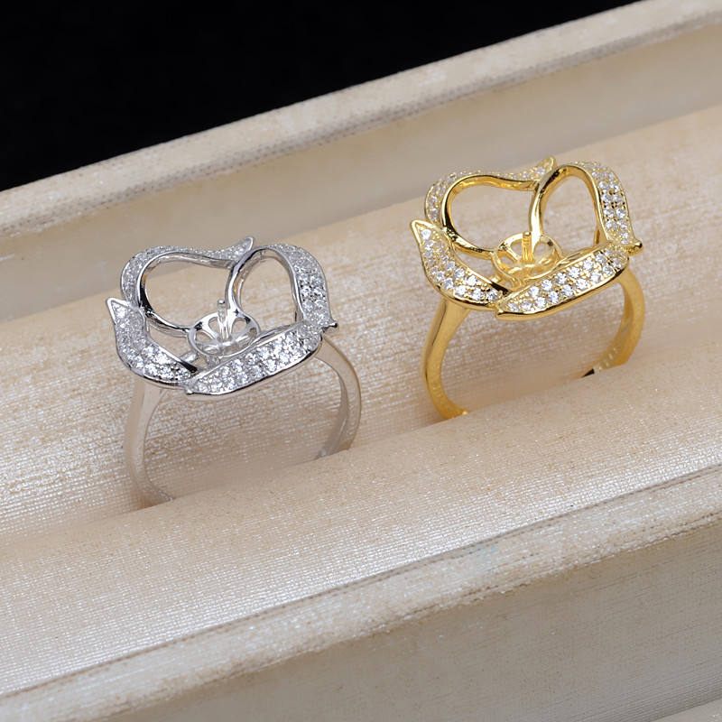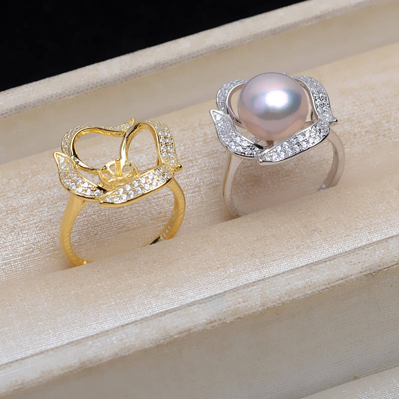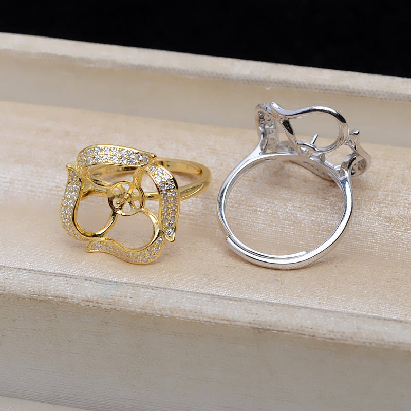 แหวนเงินแท้ S925 ปรับขนาดได้ พร้อมที่ใส่ไข่มุกขนาด 13-14 มม. รุ่น JG5126-อุปกรณ์และส่วนประกอบสำหรับทำเครื่องประดับ
