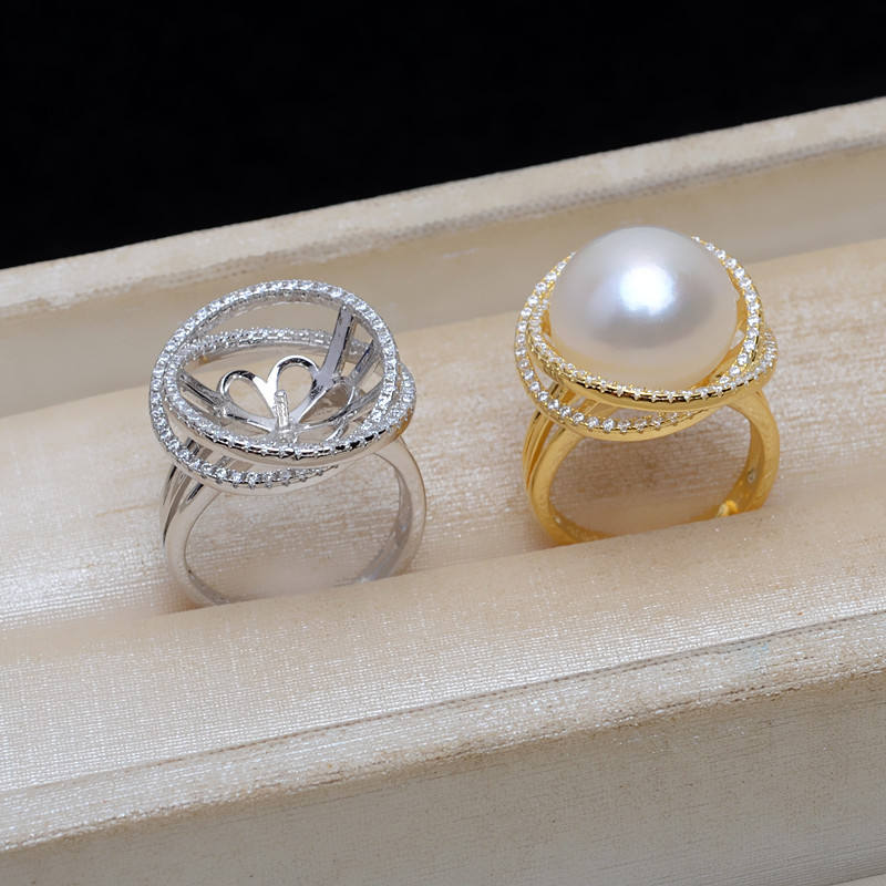 แหวนเงินแท้ S925 ปรับขนาดได้ พร้อมที่ใส่มุกขนาด 14-15 มม. รุ่น JG5130-อุปกรณ์และส่วนประกอบสำหรับทำเครื่องประดับ