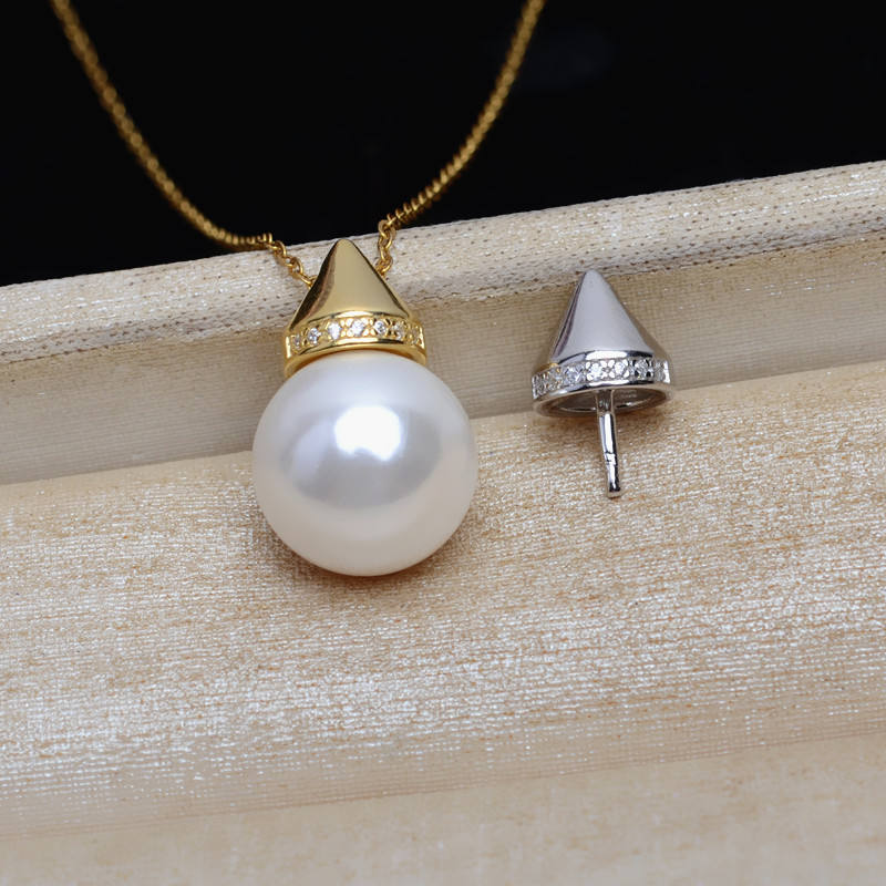 จี้ทรงกรวยเงินแท้ S925 สำหรับใส่ไข่มุกขนาด 10-13 มม. รุ่น JG5194 อุปกรณ์เปล่าสำหรับงาน DIY ออกแบบเครื่องประดับ