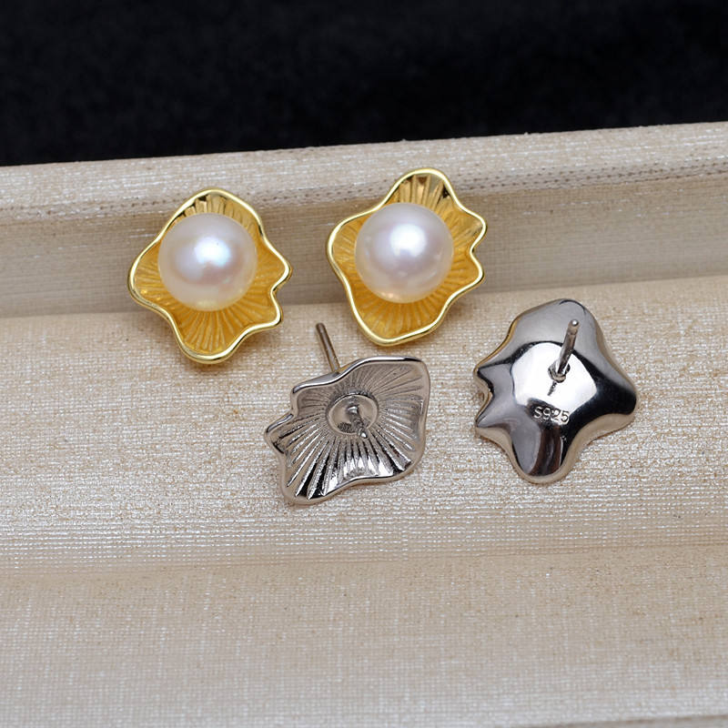 ต่างหูเงินแท้ S925 แบบบาโรกสำหรับผู้หญิง 8-13 มม. ไข่มุกแบบกลวง ถาดไข่มุก AB แบบเปลือย สำหรับทำเครื่องประดับ DIY อุปกรณ์ประกอบเครื่องประดับ