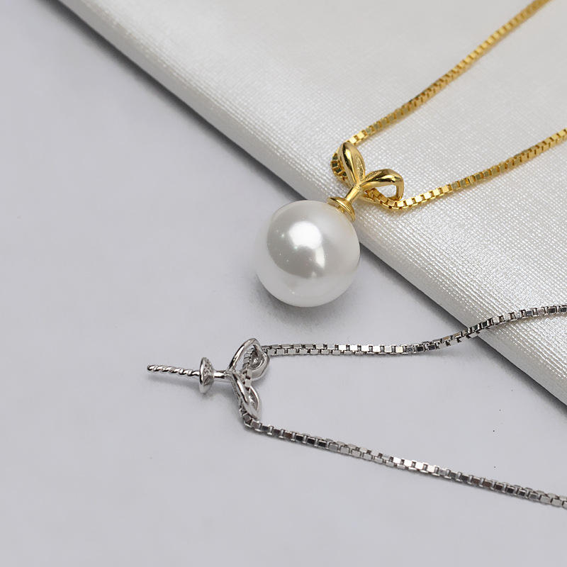 จี้เงินแท้ S925 รูปต้นถั่วงอก ชุบทอง สไตล์ยุโรปและอเมริกา แฟชั่นสร้างสรรค์ อุปกรณ์ DIY 880 ฐานเปล่าสำหรับไข่มุก