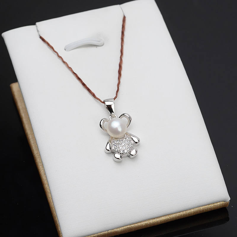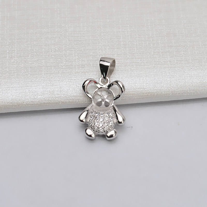 จี้หมีเงินแท้ S925 พร้อมไข่มุก 7 มม. เครื่องประดับสำหรับผู้หญิง ถาดเปล่าสำหรับงาน DIY อุปกรณ์เสริมกึ่งสำเร็จรูป
