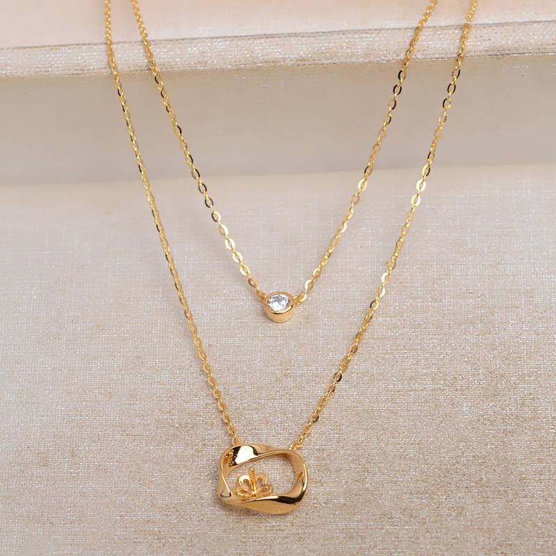 สร้อยคอเงินแท้ S925 แบบบล็อกสองชั้น DIY พร้อมไข่มุกเพชร 6-7 เม็ด สำหรับทำสร้อยคอแบบโช้คเกอร์ รุ่น JG5365 อุปกรณ์ตกแต่งเครื่องประดับ