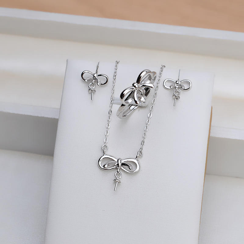 ต่างหูเงินแท้ S925 รูปโบว์ ประดับมุก 8-13 เม็ด รุ่น JG5282 งานแฮนด์เมด ถาดใส่เครื่องประดับ DIY ชุดเครื่องประดับแฟชั่น