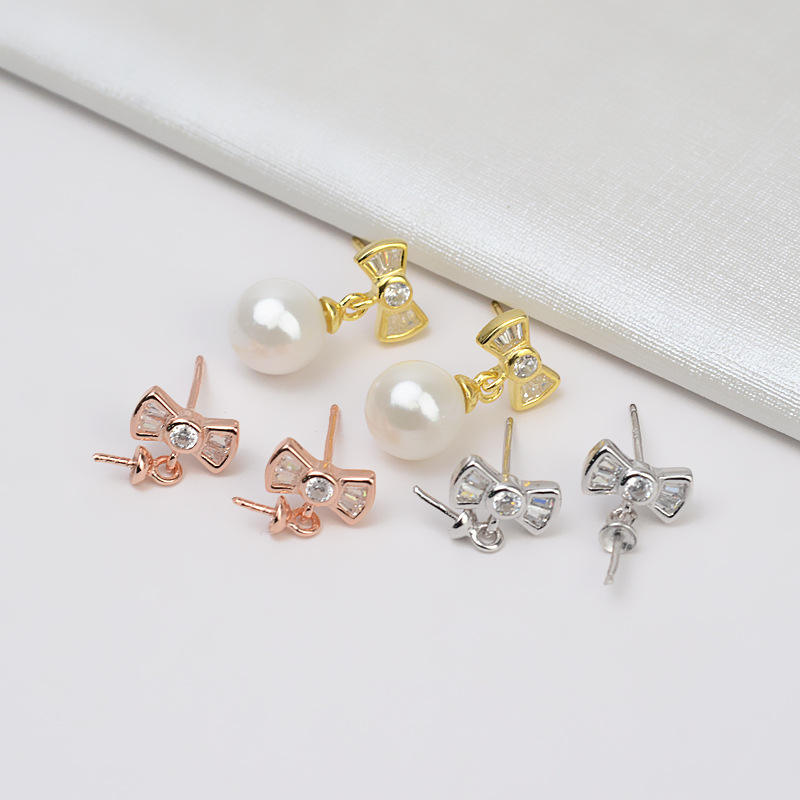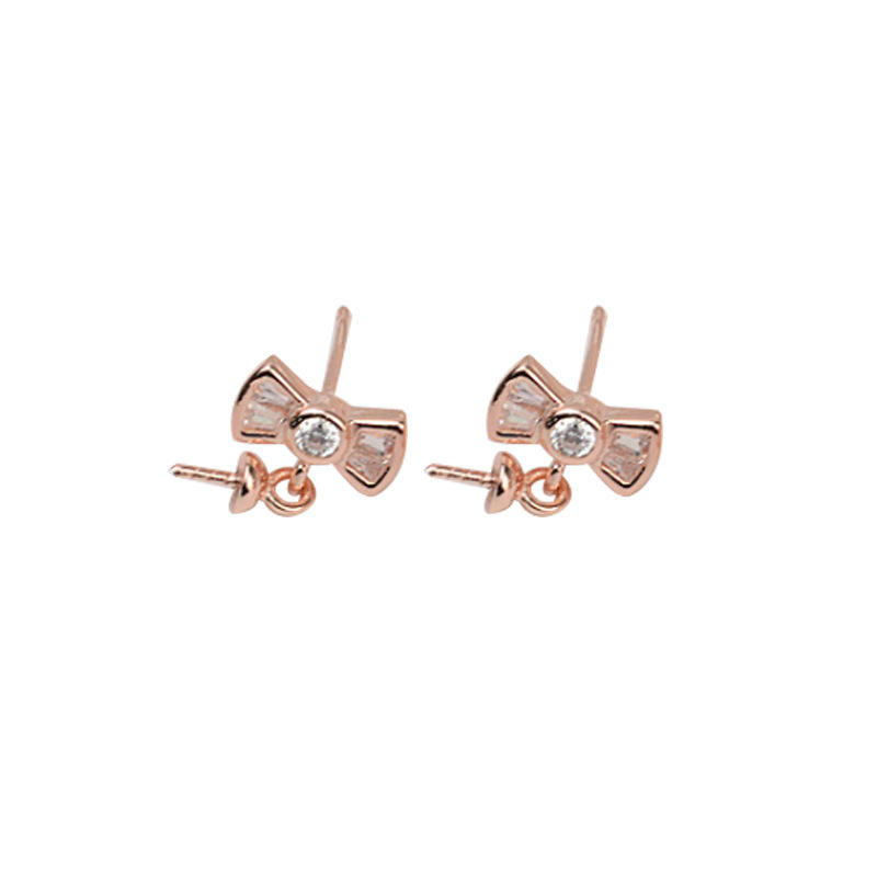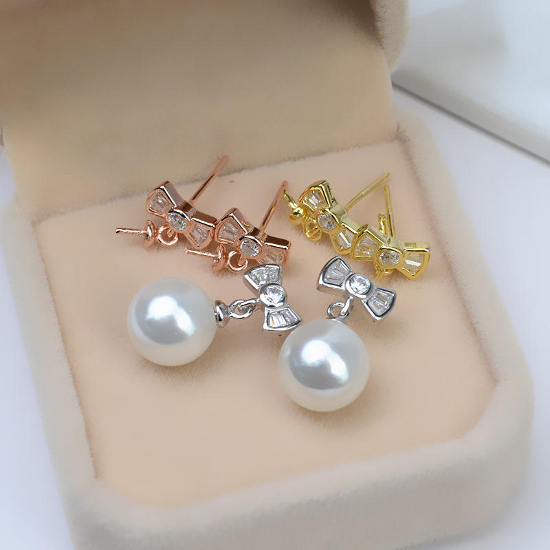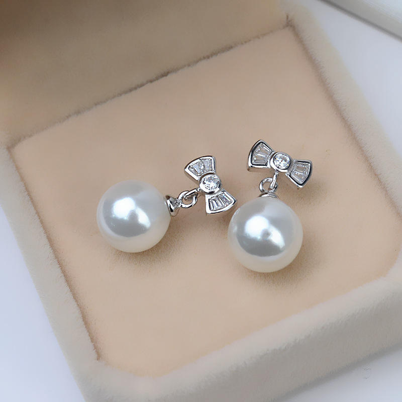 ต่างหูเงินแท้ S925 รูปโบว์ แบบเปิด พร้อมจี้ตกแต่งรูปทรงบาโรก รุ่น 4120 สำหรับผู้หญิง ประดับเพชรและทอง