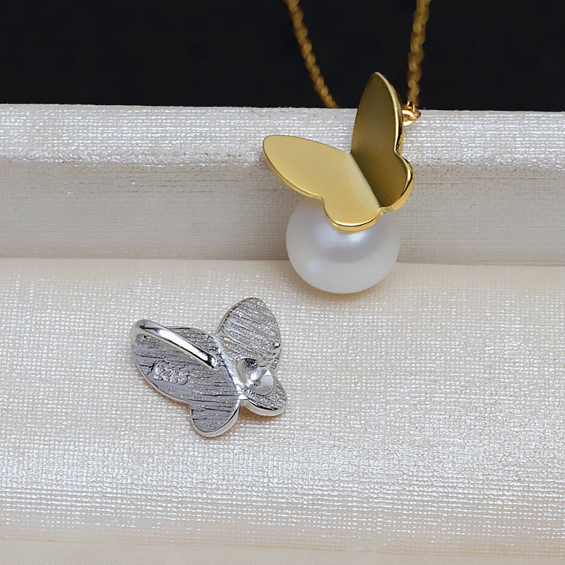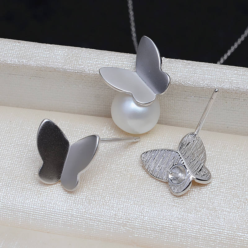 จี้เงินแท้ S925 รูปผีเสื้อ ประดับมุกด้านหลัง 9-12 ชิ้น สำหรับทำกิ๊บติดผม DIY อุปกรณ์ตกแต่งหู รุ่น 4025