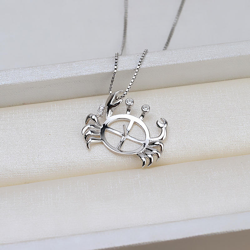 จี้เงินแท้ S925 รูปปุ่ม สำหรับทำสร้อยคอผู้หญิง รูปปู พร้อมช่องใส่ไข่มุก 13-15 มม. อะไหล่เครื่องประดับ รหัสสินค้า 1443