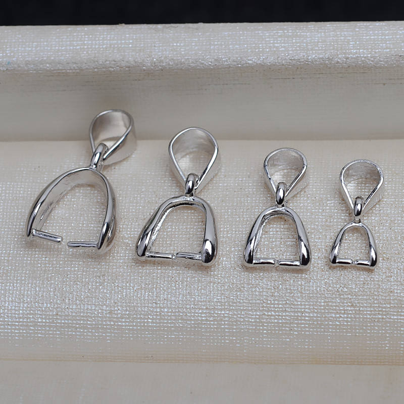 S925 Silver Clip-On Pendant Necklace DIY Accessory with Baroque Hollow Base Pearl Jade Clasp-Jewelry Findings & Components-4088
