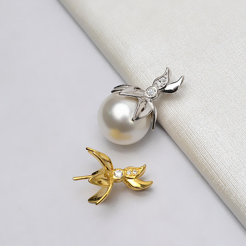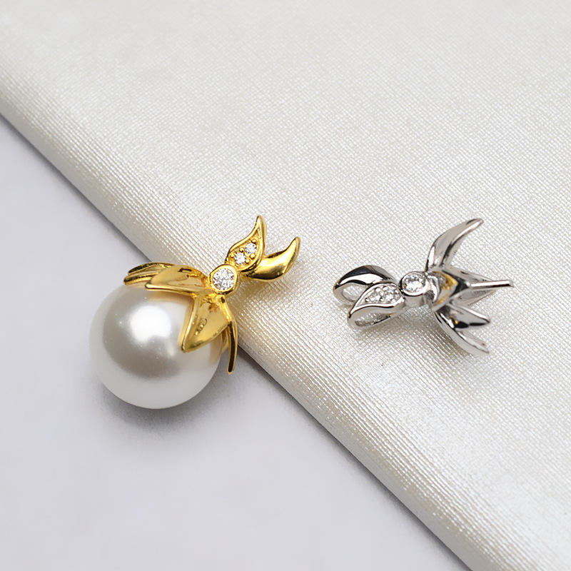จี้เงินแท้ S925 รูปทรงฮู้ดสำหรับผู้หญิง ใส่ไข่มุกขนาด 12-13 มม. อุปกรณ์ DIY สำหรับทำเครื่องประดับ รุ่น 741 อะไหล่และอุปกรณ์ทำเครื่องประดับ