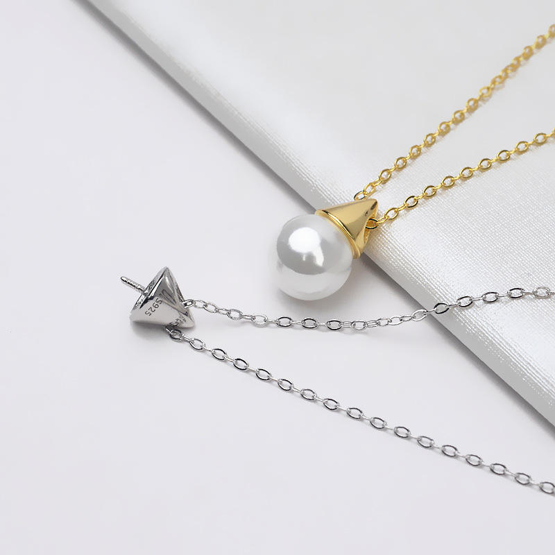 จี้เงินแท้ S925 รูปทรงกรวย 8-13 มม. สำหรับทำเครื่องประดับมุก DIY สไตล์หยาวเฉิน ชุดจี้พร้อมฐานเปล่า 1252