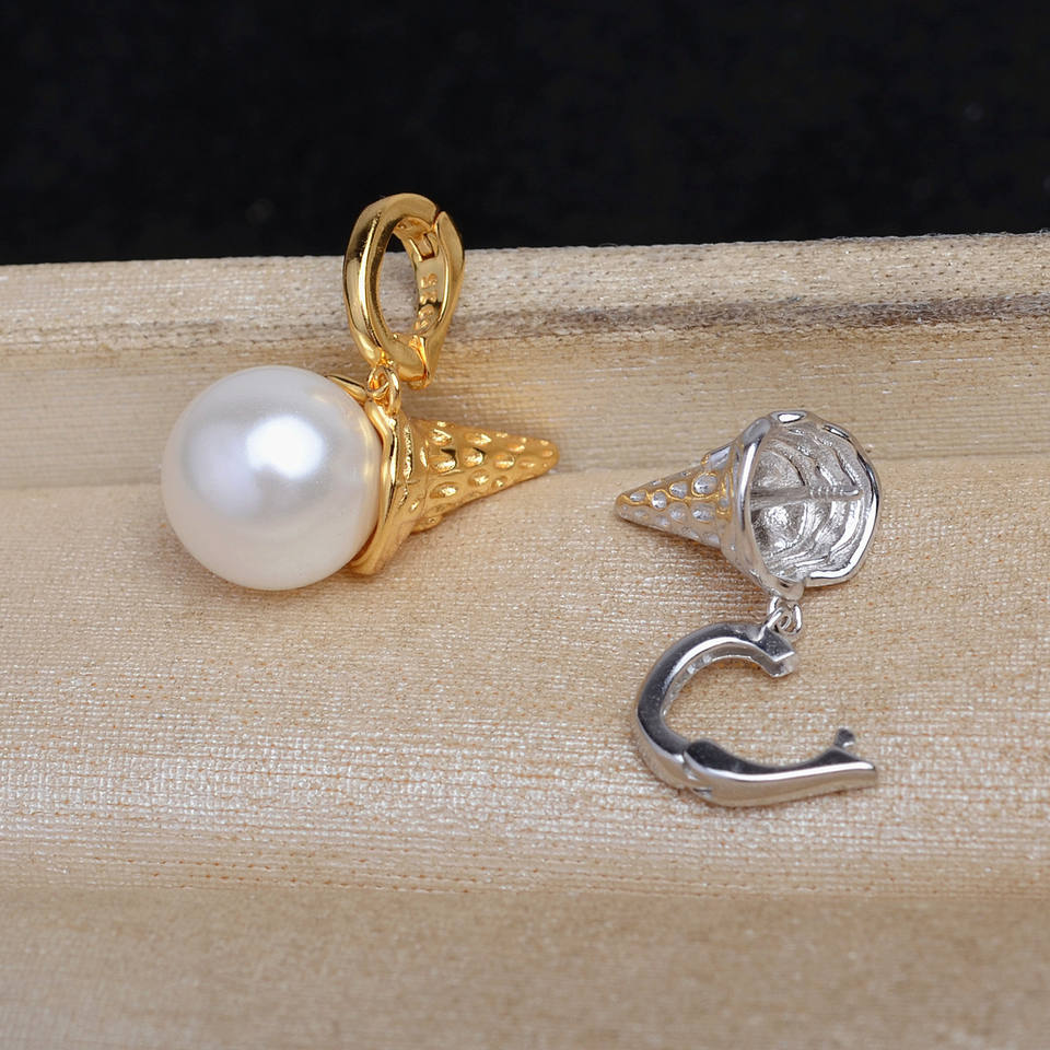 จี้เงินแท้ Wenchi S925 รูปทรงกรวย พร้อมไข่มุกขนาด 10-11 มม. อุปกรณ์ DIY อเนกประสงค์สำหรับเครื่องประดับ รุ่น 13538 ฐานจี้แบบ Snap-On จากประเทศจีน
