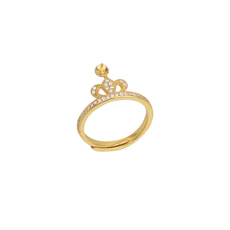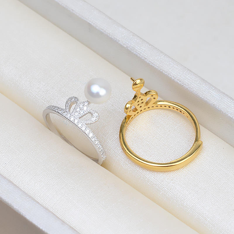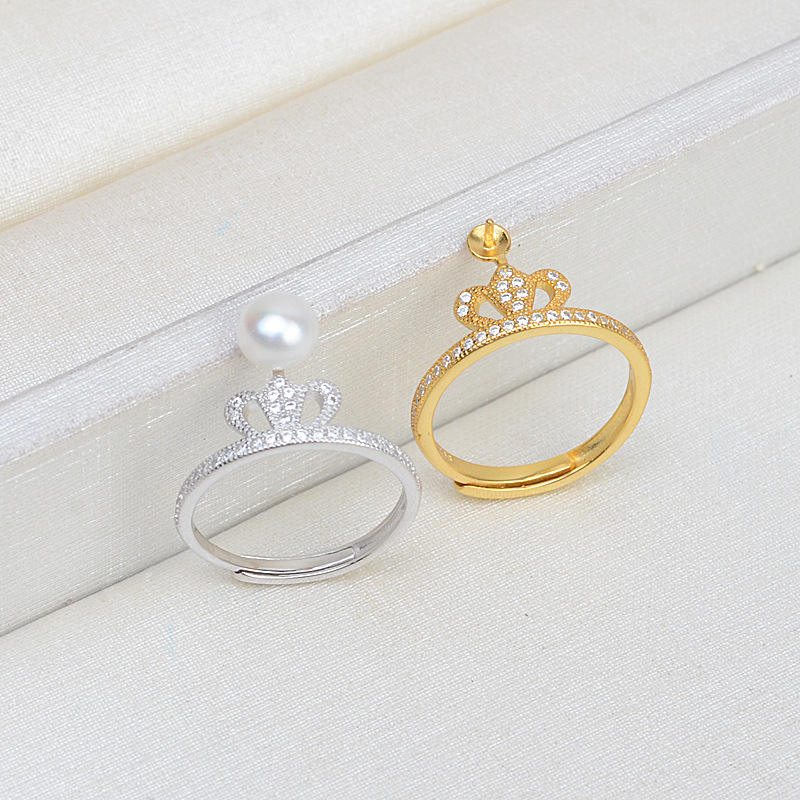 แหวนเงินแท้ S925 รูปมงกุฎ แหวนเปิดปรับขนาดได้ ประดับมุก 5-6 มม. อุปกรณ์ทำเครื่องประดับ DIY ตัวยึดเครื่องประดับแบบถอดได้ ชิ้นส่วนประกอบเครื่องประดับ
