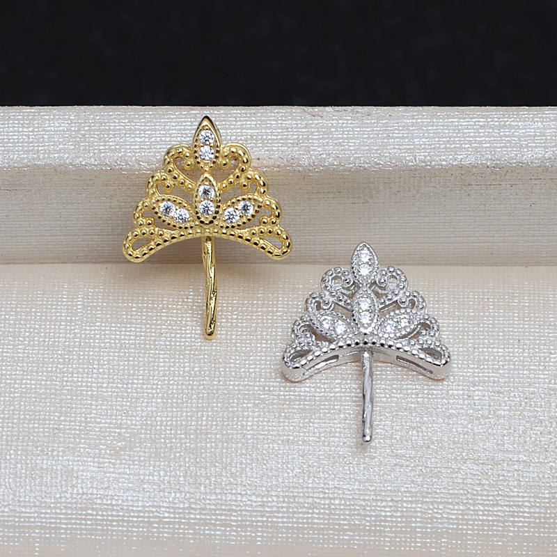 จี้มงกุฎเงินแท้ S925 ขนาด 10-17 มม. สำหรับทำเครื่องประดับมุก DIY ถาดเปล่า ผลิตภัณฑ์กึ่งสำเร็จรูป 4011 อุปกรณ์และส่วนประกอบเครื่องประดับ