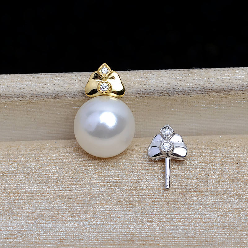 จี้ไข่มุกทรงมงกุฎเงินแท้ S925 พร้อมฐานเปล่าสำหรับทำสร้อยคอแบบ DIY รุ่น JG5273 9-12 อุปกรณ์เสริม