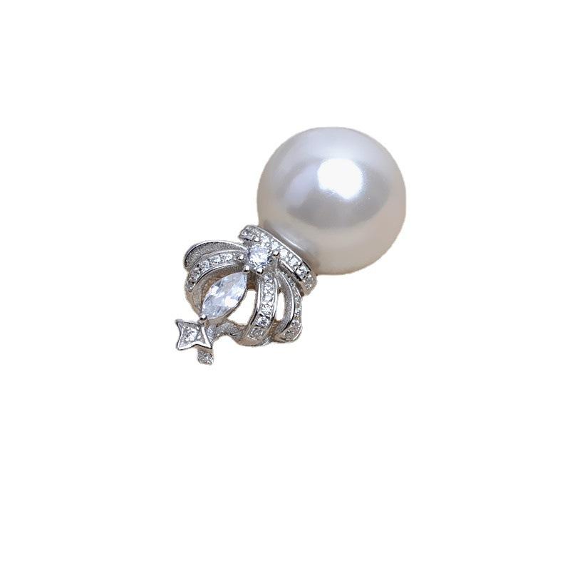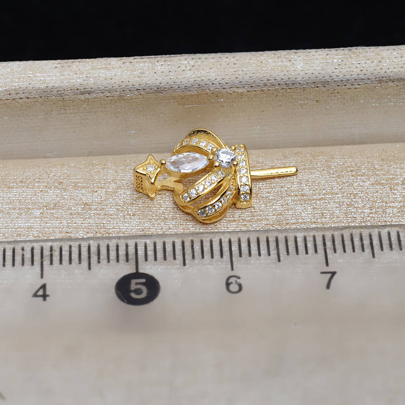 จี้เงินแท้ S925 รูปมงกุฎ แบบเข็มตรง สำหรับผู้หญิง DIY ประดับมุก 13-16 มม. อุปกรณ์เสริม ฐานเปล่า JG5225 ชุบสีทอง 18K