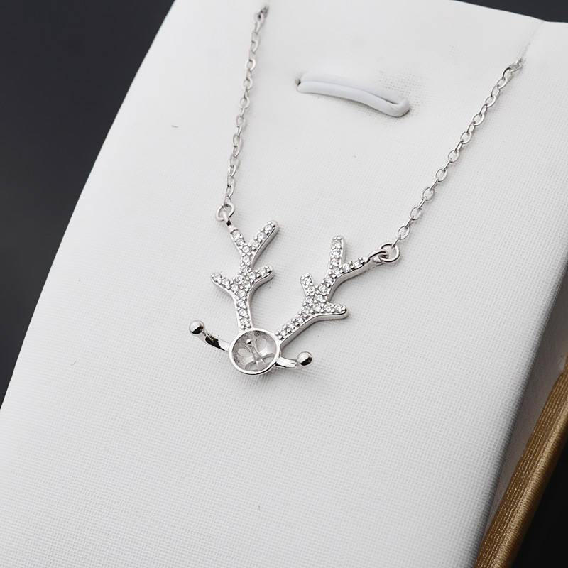อุปกรณ์ DIY เงินแท้ S925 ชุดจี้สร้อยคอประดับมุก 8-9 เม็ด พร้อมจี้รูปเขาสัตว์ประดับเพชรซิรคอน สำหรับสร้อยคอแบบคลาวิเคิล- ตัวเรือนเปล่าสำหรับ Tide 345