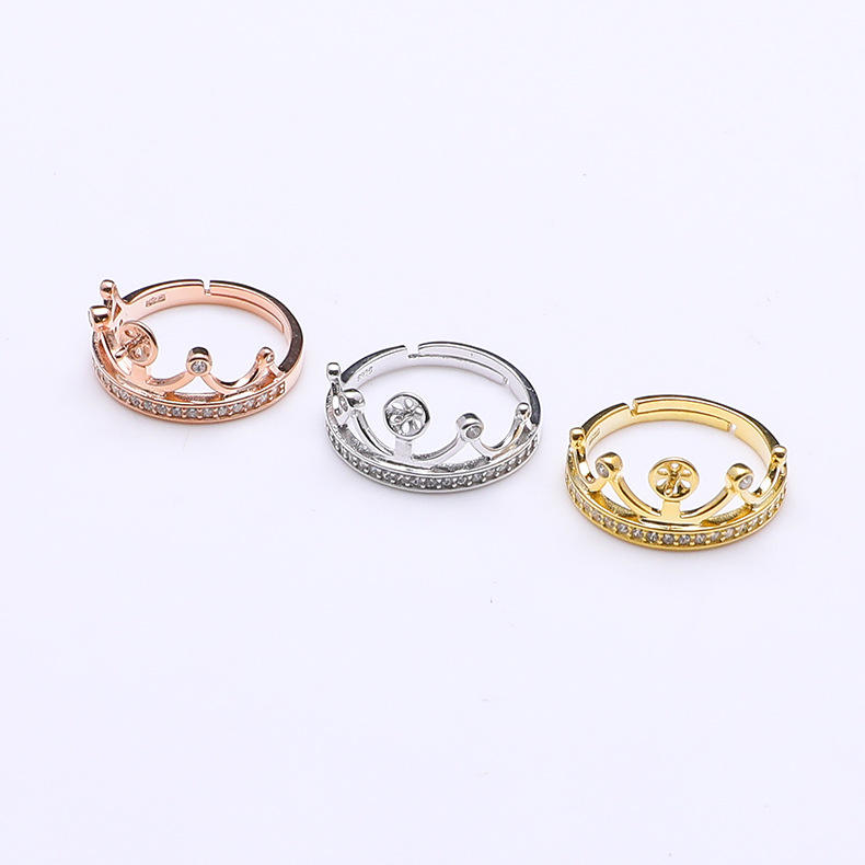 อุปกรณ์ทำเครื่องประดับเงินแท้ S925 ยี่ห้อ Wenchi แบบปรับได้ 3 สี รูปมงกุฎ สำหรับใส่ไข่มุก ขนาด 6-9 มม. พร้อมห่วงกระโดด 10 วง ขนาด 3 มม.