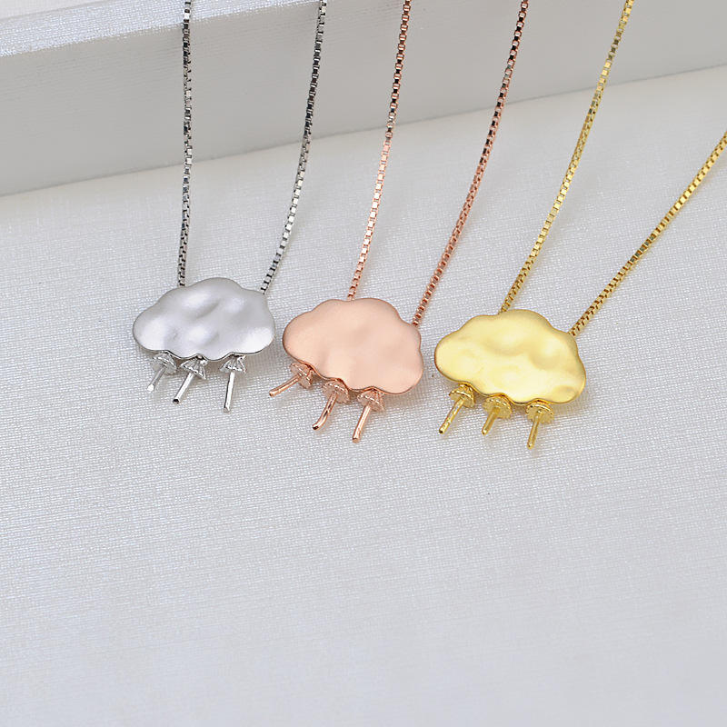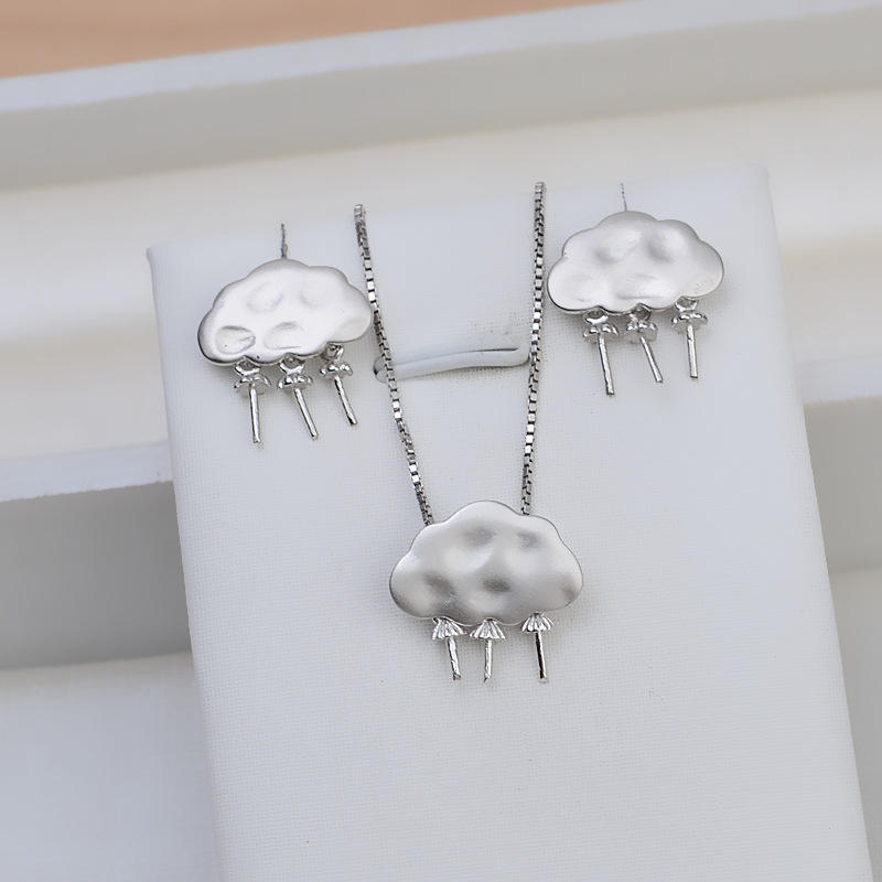 ชุดเครื่องประดับเงินแท้ S925 สำหรับทำเอง สร้อยคอจี้รูปแมวน้อย/แพนด้า พร้อมที่ใส่ไข่มุก ต่างหูแบบติด 1347