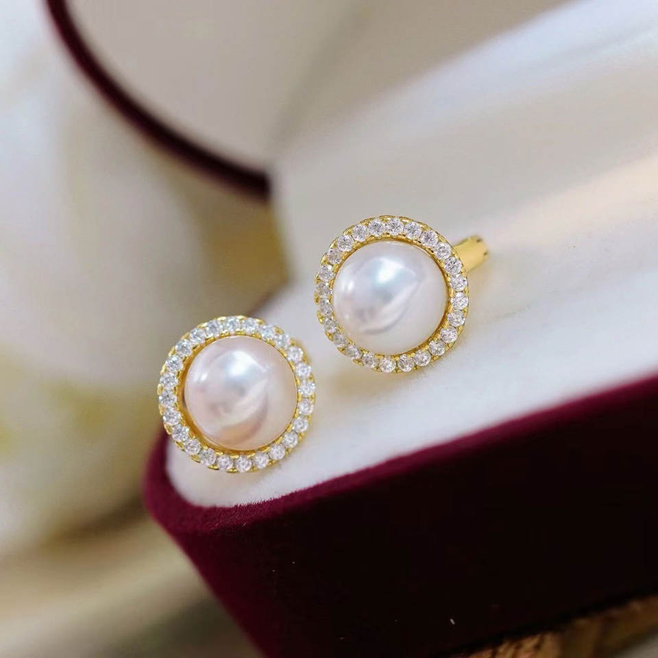 อุปกรณ์ทำเครื่องประดับเงินแท้ S925 สำหรับไข่มุก DIY ลูกปัดกลมขนาด 8-9 มม. รุ่น 22144 ตัวเรือนเปล่าสำหรับต่างหูแฟชั่นเงินแท้ พร้อมลูกปัดขนาด 8-9 มม. รุ่น 22144