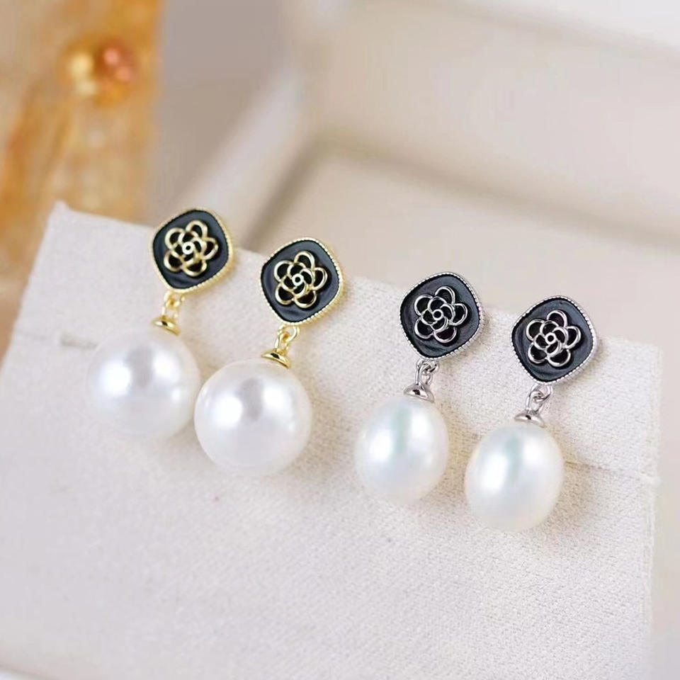 ต่างหูเงินแท้ S925 แบบ DIY พร้อมฐานรองมุกสีดำ 8 ชิ้น สำหรับสร้างสรรค์งานออกแบบเครื่องประดับที่เป็นเอกลักษณ์ของคุณเอง