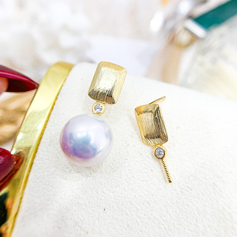 ต่างหูเงินแท้ S925 สำหรับทำเอง พร้อมฐานเปล่าสำหรับใส่ไข่มุก ขนาด 8-12 มม. รุ่น 21466