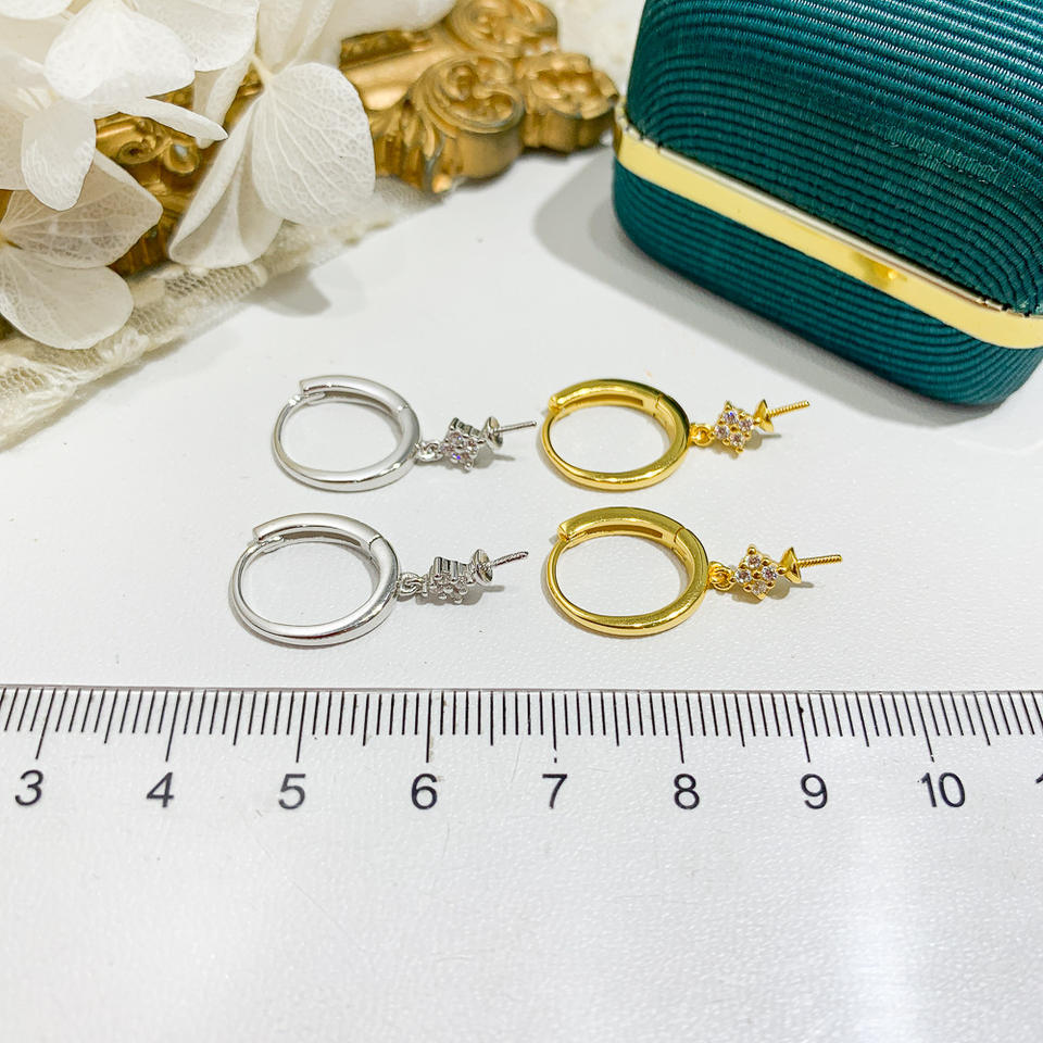 ต่างหูเงินแท้ S925 แบบ DIY สำหรับใส่ไข่มุก รุ่น 21961 พร้อมฐานเปล่าสำหรับติดตั้ง รองรับไข่มุกทรงกลมขนาด 9-15 มม. และตัวล็อคแบบเกี่ยว