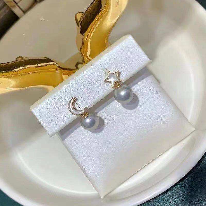 อุปกรณ์ทำเครื่องประดับเงินแท้ S925 สำหรับต่างหูรูปดาวและพระจันทร์ พร้อมช่องใส่ไข่มุกขนาด 7-10 มม. รุ่น 20915