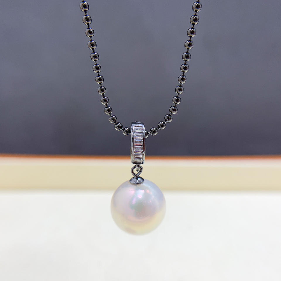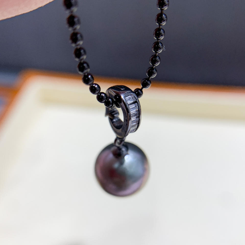 อุปกรณ์ทำเครื่องประดับเงินแท้ S925 สำหรับไข่มุก DIY ตัวเรือนเปล่าสีดำ พร้อมห่วงสำหรับไข่มุกทรงกลมขนาด 10-13 มม. รุ่น 31055
