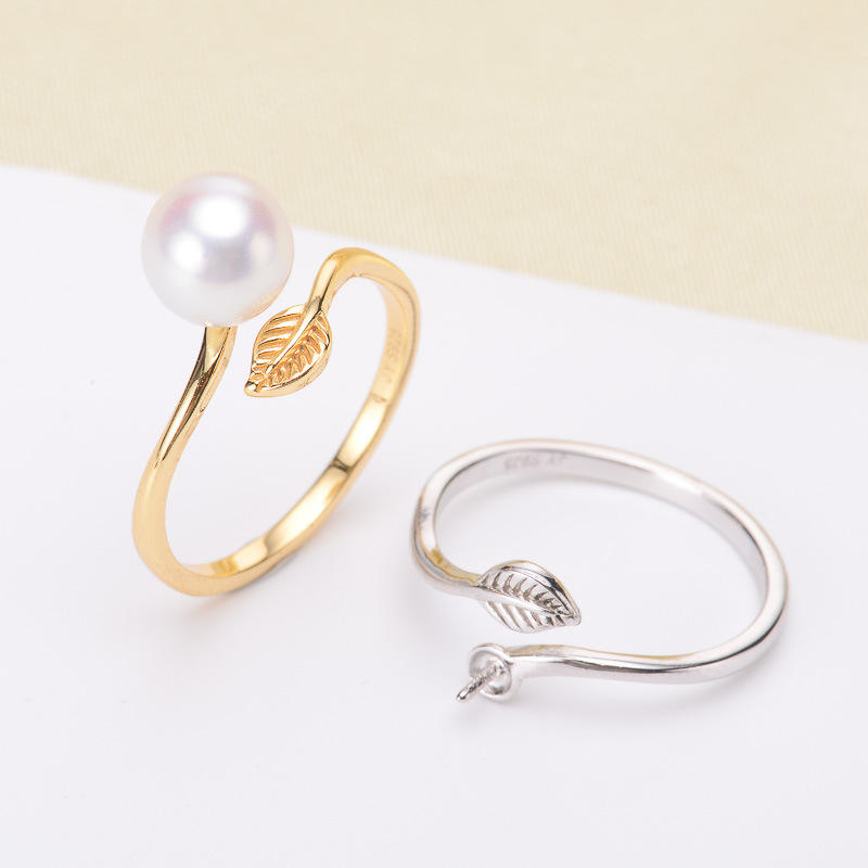 ขาตั้งแหวนเงินแท้ S925 สำหรับทำเครื่องประดับมุก DIY รุ่นสองชั้น สำหรับมุกขนาด 5-6 มม. รุ่น 1972-ขาตั้งเครื่องประดับทันสมัย