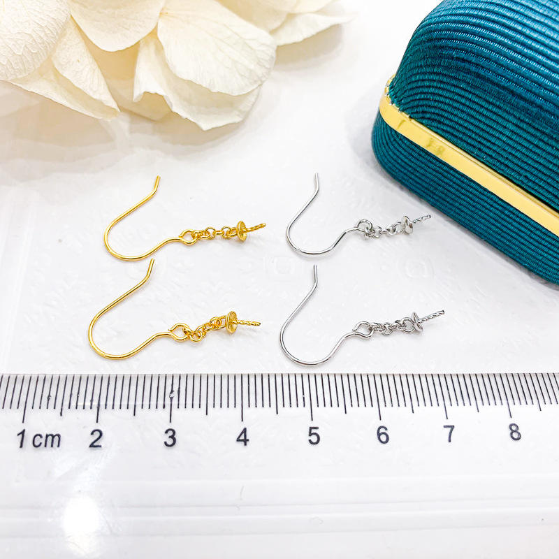 ต่างหูเงินแท้ S925 สำหรับประดับมุก DIY ขนาด 8-10 มม. รุ่น 21049 ชุบทอง แบบติดหูเปล่า ตกแต่งเรียบง่ายด้วยเงิน